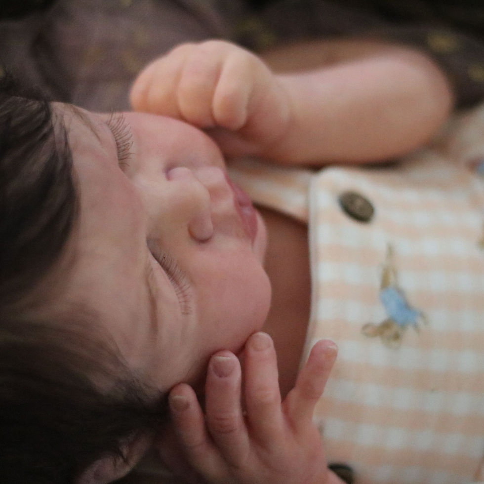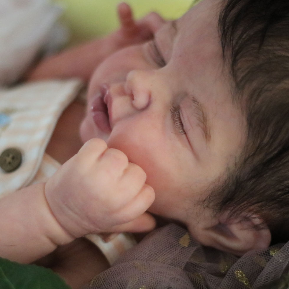 Mavis is a large newborn. Wearing newborn and 0-3 months well. She is a full body atomically correct silicone girl. She will come home with a two outfits, blanket, and coa. She is painted and rooted by me with a mix of extra soft mohair and alpaca hair. She has sculpted gums and tongue. All sales are final, no refunds, no returns.