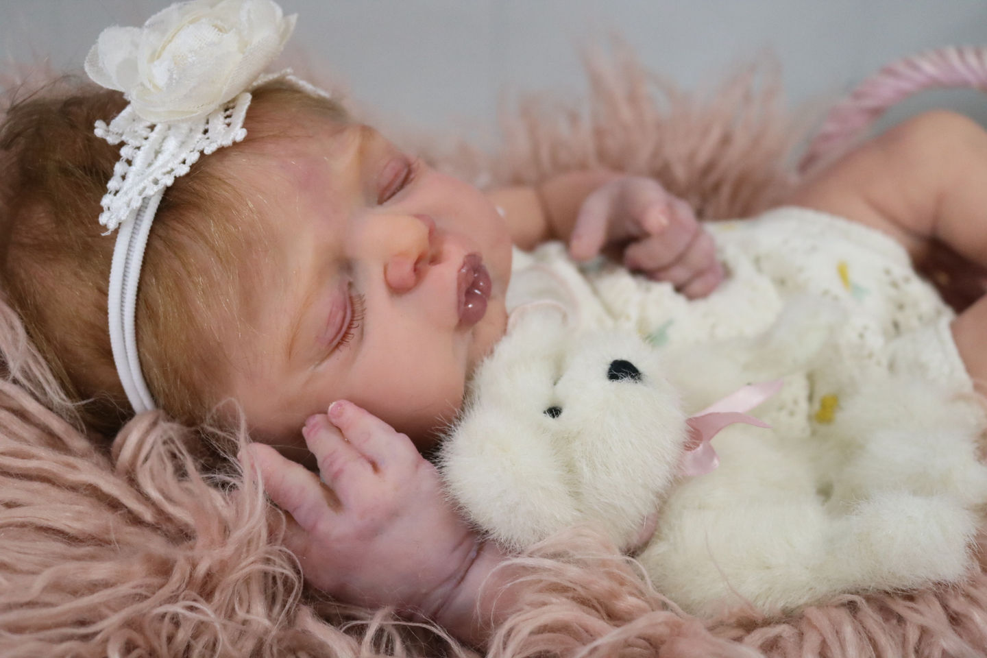 Partial silicone with full limbs on a cloth body. She is a large newborn and is rooted with premium mohair.